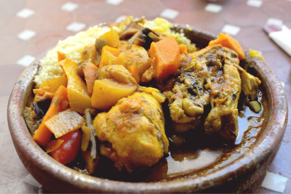 Un samedi du mois d’août vers 16 h (donc fort tard), avec l’irremplaçable Catherine, nous avons pu déguster un couscous accompagné d’un thé à la menthe pour 25 €. Rapport qualité-prix imbattable, vous en conviendrez. Le tout servi avec le sourire. Décidément, les Marocains ont le sens de l’hospitalité inscrit dans leurs gènes. Ici encore, j’ai pu le vérifier.