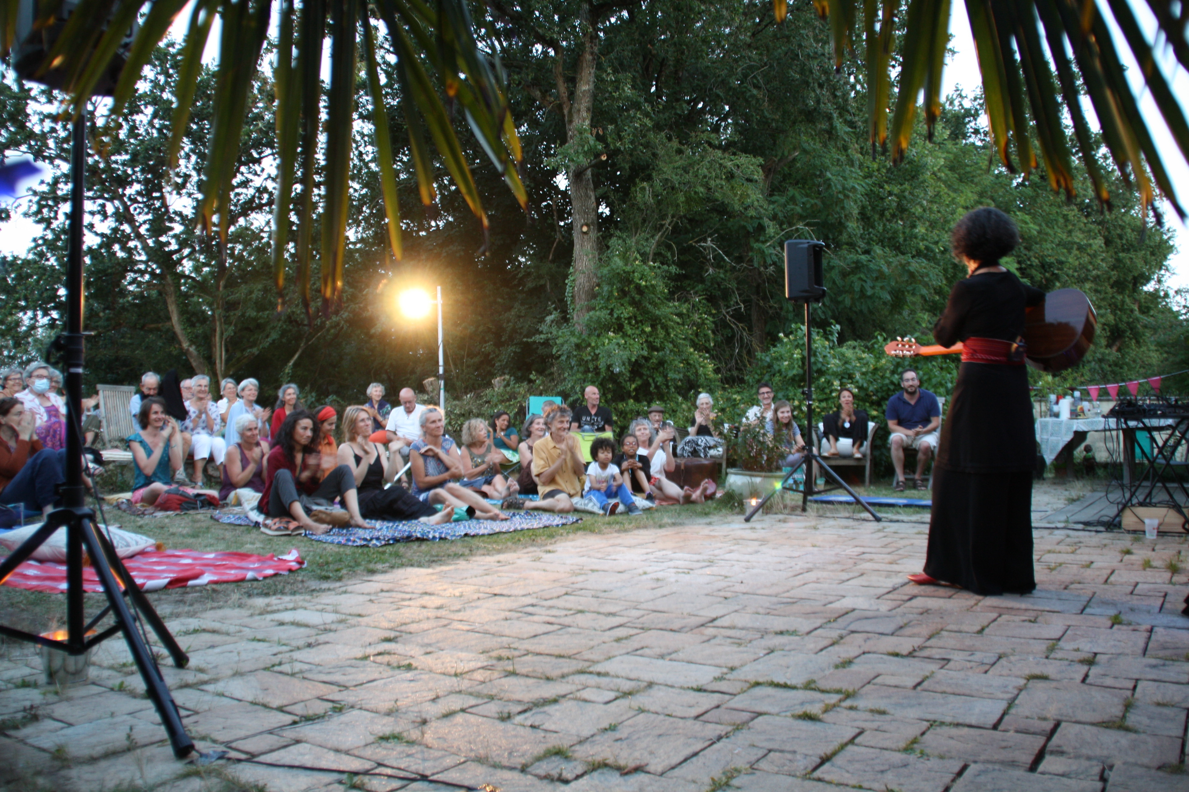 Évidemment, notre connaissance à tous les deux du milieu artistique a certainement été déterminante dans la concrétisation du projet. Et puis forts de notre expérience des autres années, nous savions monter des spectacles dans les jardins ! Dans un premier temps, nous avons demandé aux membres de l’association qui en possédaient un qui soit assez grand pour accueillir un spectacle s’ils seraient partants et Frédérique, ma compagne, a contacté le SAAS(1), un regroupement de compagnies et de professionnels du spectacle vivant implantés dans notre département. Nous avons reçu une vingtaine de propositions et la mécanique s’est enclenchée tout naturellement sachant que notre premier désir était de privilégier les spectacles locaux…