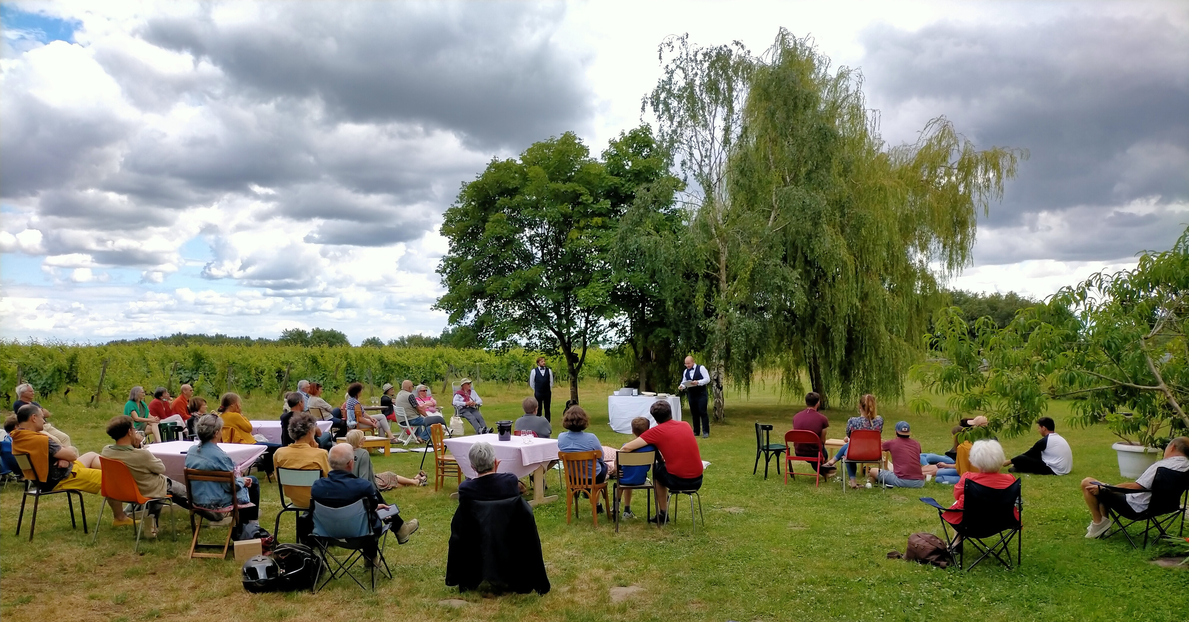 Ma compagne et moi, nous habitons depuis seize ans à Bouchemaine dans le Maine-et-Loire et chaque été nous organisons un spectacle dans notre jardin à l’attention de nos amis, de nos voisins pour se retrouver ou dans certains cas tout simplement pour faire connaissance. Pour ma part, je trouve un peu triste de croiser des personnes tout au long de l’année sans jamais rien partager avec elles. Au départ, nous avions pensé opter pour un apéritif et comme nous sommes comédiens tous les deux, l’idée d’une représentation théâtrale a fait son chemin…