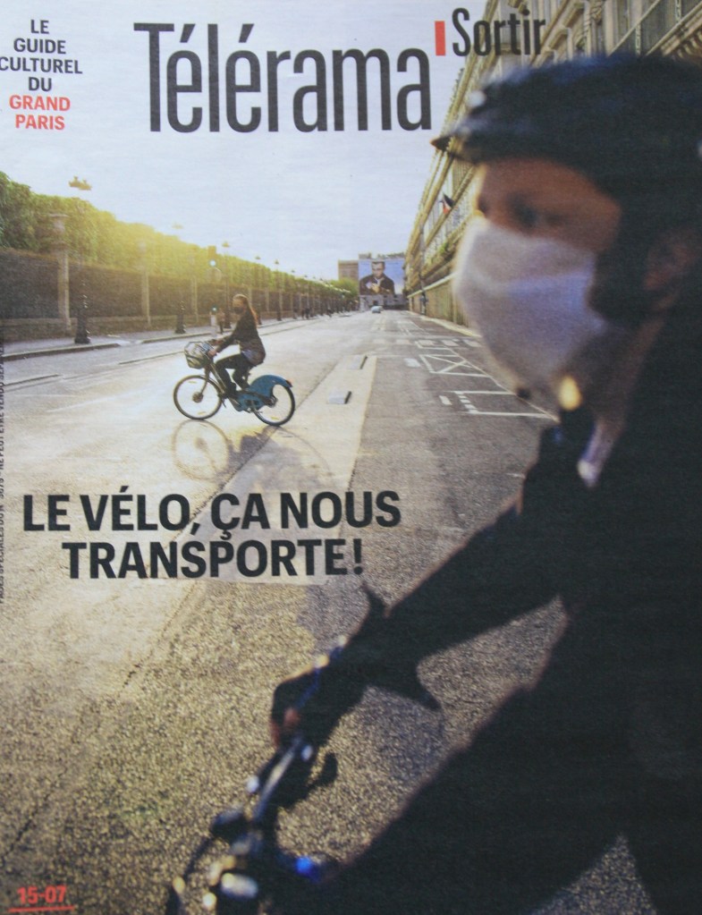 Comme celles et ceux qui rédigent dans le cadre professionnel, j’ai toujours le désir d’offrir à mes textes (et donc à mes lecteurs !) des accroches ou des titres percutants. Et je suis également très friand des trouvailles de mes collègues… À partir d’aujourd’hui, j’ai décidé de vous faire partager mes coups de cœur dans ce domaine ! Je commence donc avec ce supplément Sortir de Télérama qui proclame en couverture « Le vélo, ça nous transporte ». Sans céder une seconde à l’emphase ou au sensationnalisme, l’intérêt de cet intitulé réside essentiellement dans la polysémie du mot « transporte » évoquant le transport et aussi le plaisir, l’enthousiasme, l’adhésion… Une création rédactionnelle toute en sobriété qui respecte l’ADN du journal et qui épouse parfaitement l’air du temps. Faisant écho aux nouvelles aspirations de beaucoup d’entre nous, il faut le souligner. Que demander de plus quand on souhaite attirer l’attention sans être « racoleur » ? Selon moi, mine de rien, le responsable de ce travail d’orfèvre a visé en plein dans le mille.